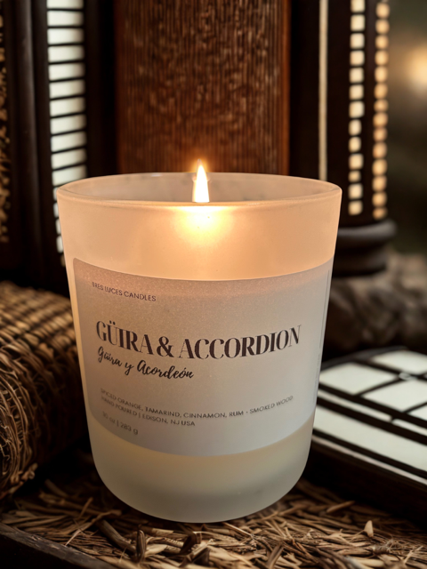 Lively, bold, and full of soul — Güira y Acordeón. Imagine a night in the campo, stars overhead, where the metallic shimmer of the güira mingles with the accordion’s playful melodies and the pulse of the tambora. This candle captures that joyous celebration with warm spices, sweet tamarind, and a whisper of smoky wood. Whether you're cleaning the house with the music blasting, or reminiscing about summer nights in el campo—this one will have you saying ¡dale pa’llá! every time you light it. It’s not just a scent — it’s a rhythm in the air.